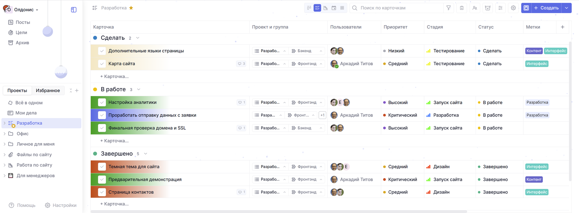 А можно задать соответствие цвета карточки с приоритетом, статусом или же иным признаком – цвет карточки выбираете вы сами.