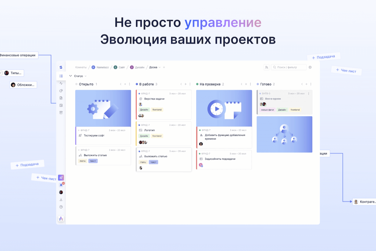 Работа полностью совпадает с браузером: вы создаете задачи, работаете с проектами, получаете уведомления и взаимодействуете с командой так же, как и в веб-версии.