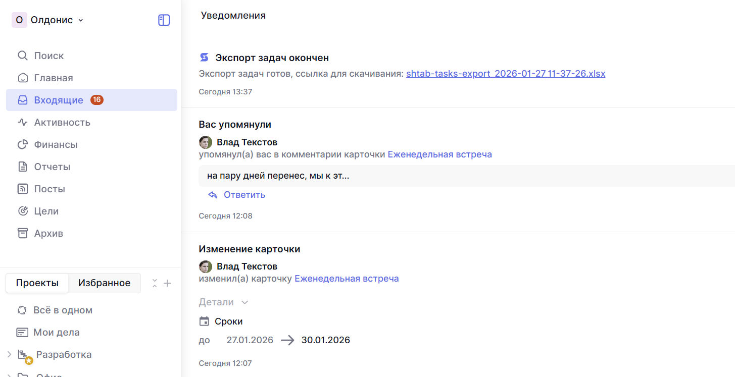 В Shtab можно выгрузить все задачи рабочего пространства в формате xlsx. Экспортируемые поля можно выбрать самостоятельно.