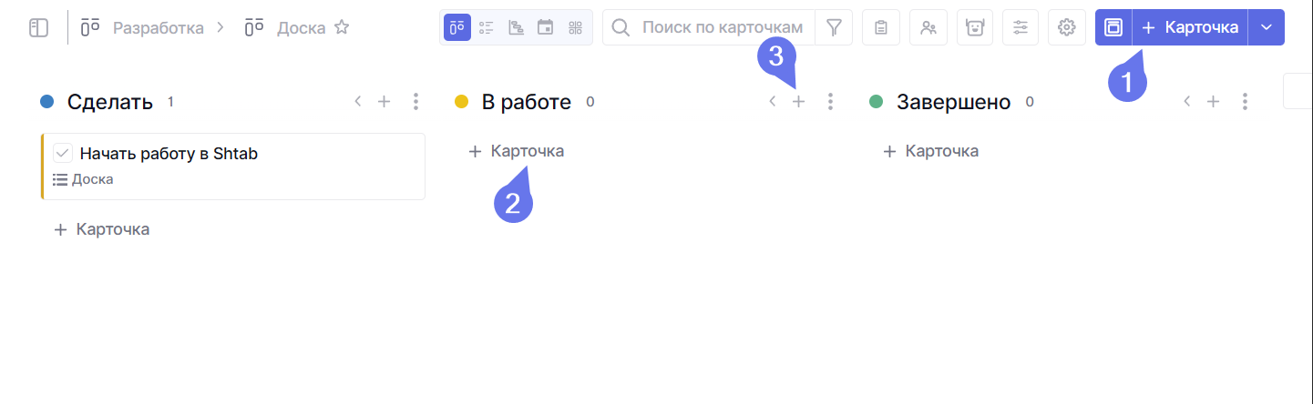 Когда у вас будет много карточек, в них станет сложнее ориентироваться. Чтобы упростить процесс поиска нужной, в Shtab предусмотрены сортировка, фильтрация и поиск.