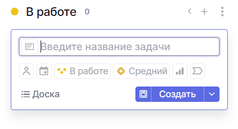 При создании вы сможете сразу указать статус задачи, ее ответственного, сроки завершения или другие данные.