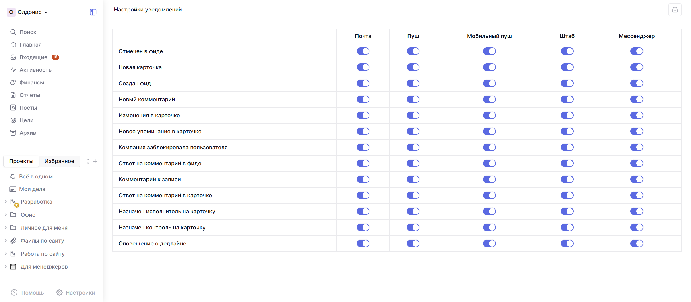 В Shtab предусмотрена гибкая система уведомлений, которую каждый сможет настроить под себя.