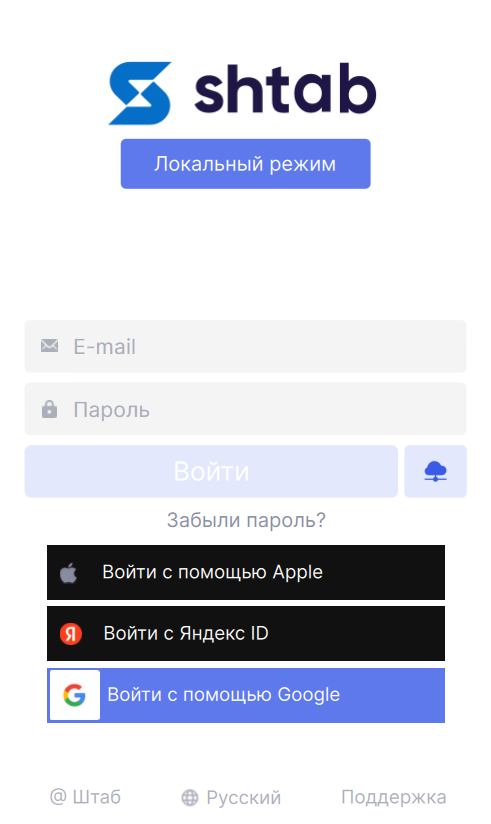 Для авторизации важно использовать тот же способ входа, которым вы регистрировались в Shtab изначально.