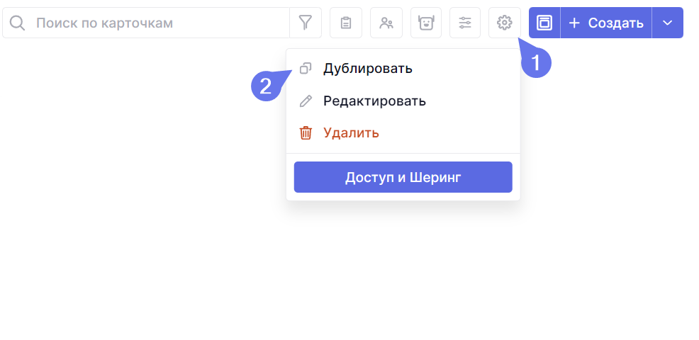 Чтобы дублировать рабочее пространство, нажмите на значок шестеренки в правом верхнем углу и выберите опцию Дублировать.