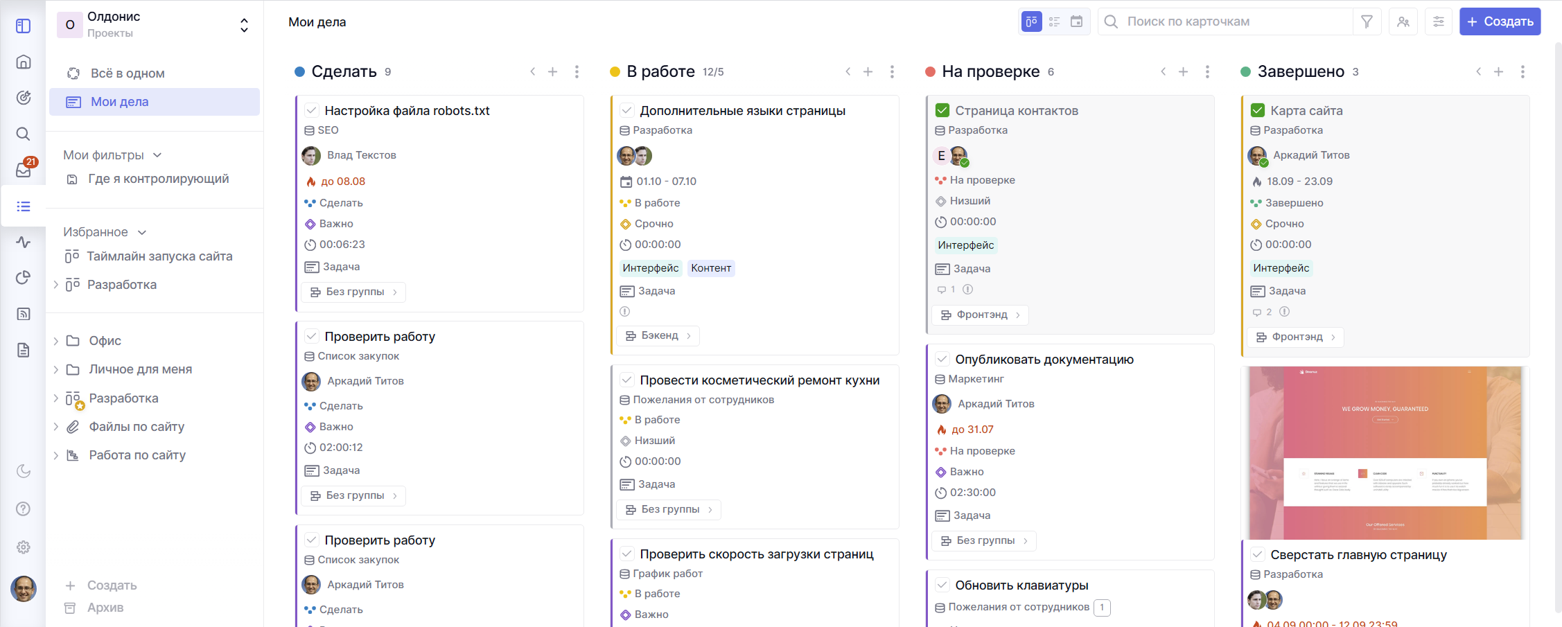 Если зайти в раздел Мои дела (или Всё в одном), то можно увидеть статусы без какого-либо определенного порядка: