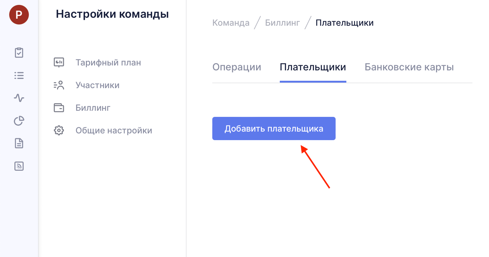 Чтобы выставлять счет по вашим реквизитам, сначала их нужно добавить в систему. Для этого откройте настройки команды, зайдите в раздел Биллинг и выберите вкладку Юр. лица.
