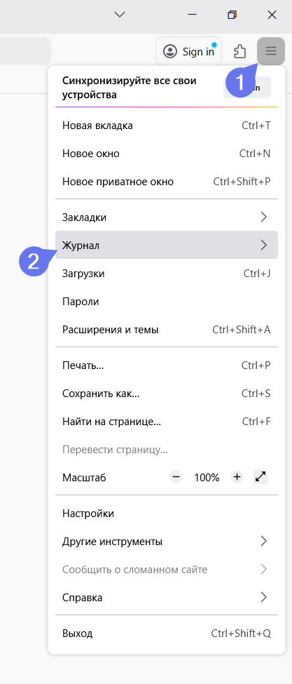 - Нажмите на кнопку меню (три горизонтальные линии), а затем выберите раздел Журнал