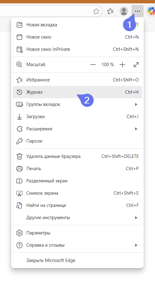 - Нажмите на три горизонтальные точки в правом верхнем углу и выберите раздел Журнал