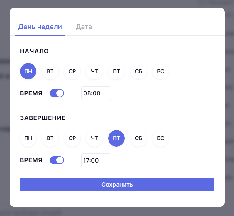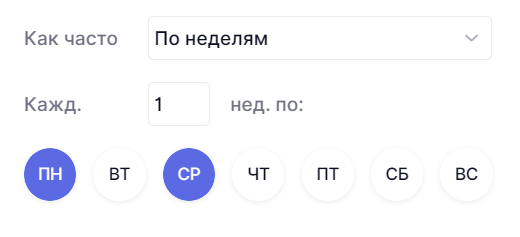 Также можно выбрать конкретные дни недели, в которые карточка должна создаваться. Например, каждый понедельник и среду.