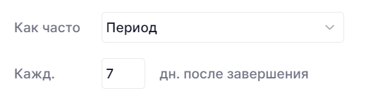 - Пользовательский период – карточка будет создана через Х дней после завершения предыдущей