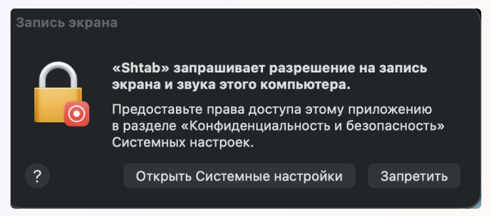 Предоставьте доступ Shtab к универсальному доступу и записи экрана, чтобы следить за активностью.