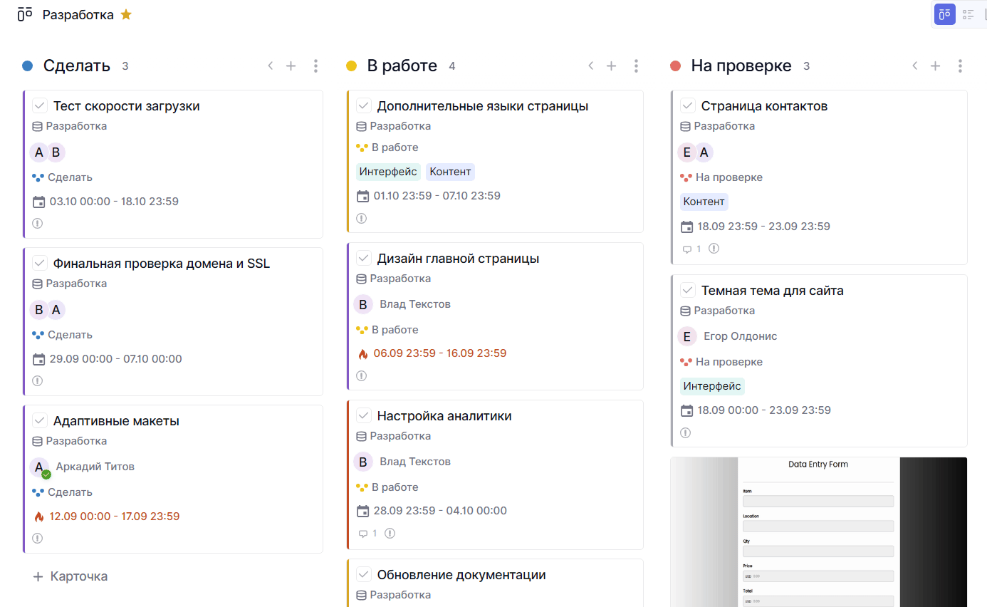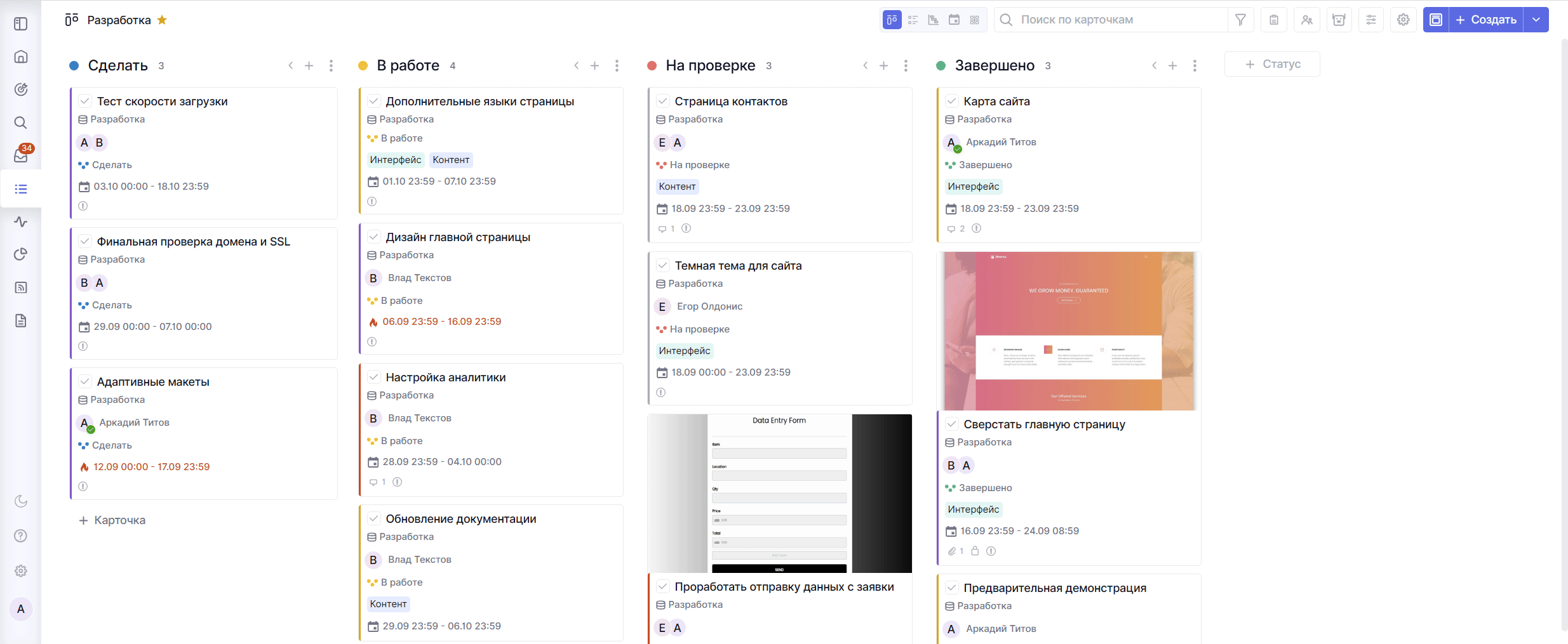 Будет изменен крайний срок карточки. - Назначить вас как исполнителя выбранных карточек;