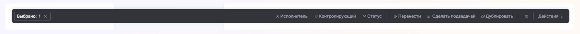 После того как вы выделите хотя бы одну задачу, внизу страницы появится меню массовых действий.