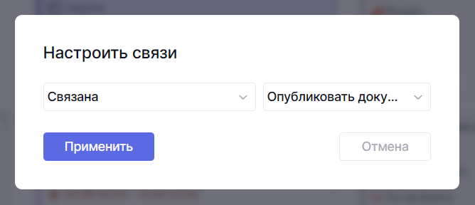 - Добавить связи с карточкой. Для выбранных карточек вы выбираете связь и выбираете, с какой именно карточкой она будет.
