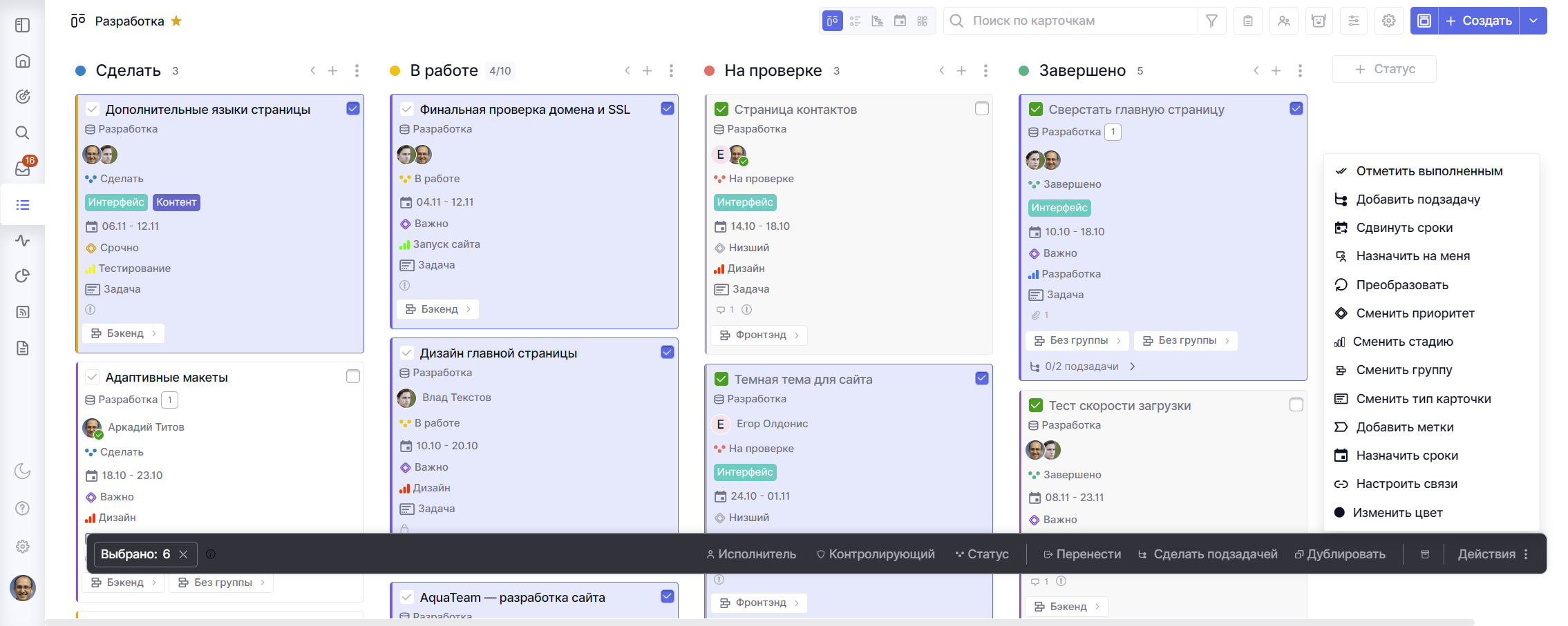 В этой инструкции расскажем подробнее о том, как выделять карточки и какие массовые действия с задачами можно сделать.