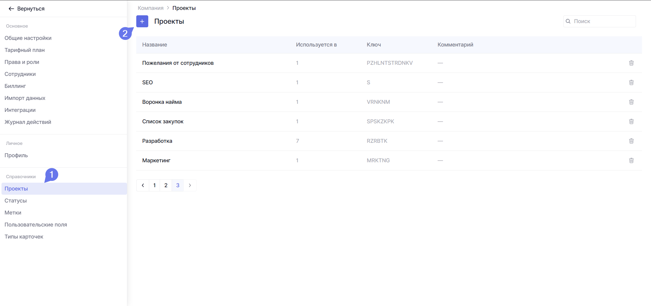 Но вы можете заранее создать проект с нужным названием и указать его ключ. Для этого в настройках команды вы сможете открыть страницу Проекты и там создать новый проект.