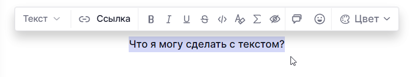 При выделении текста также доступны функции форматирования текста: