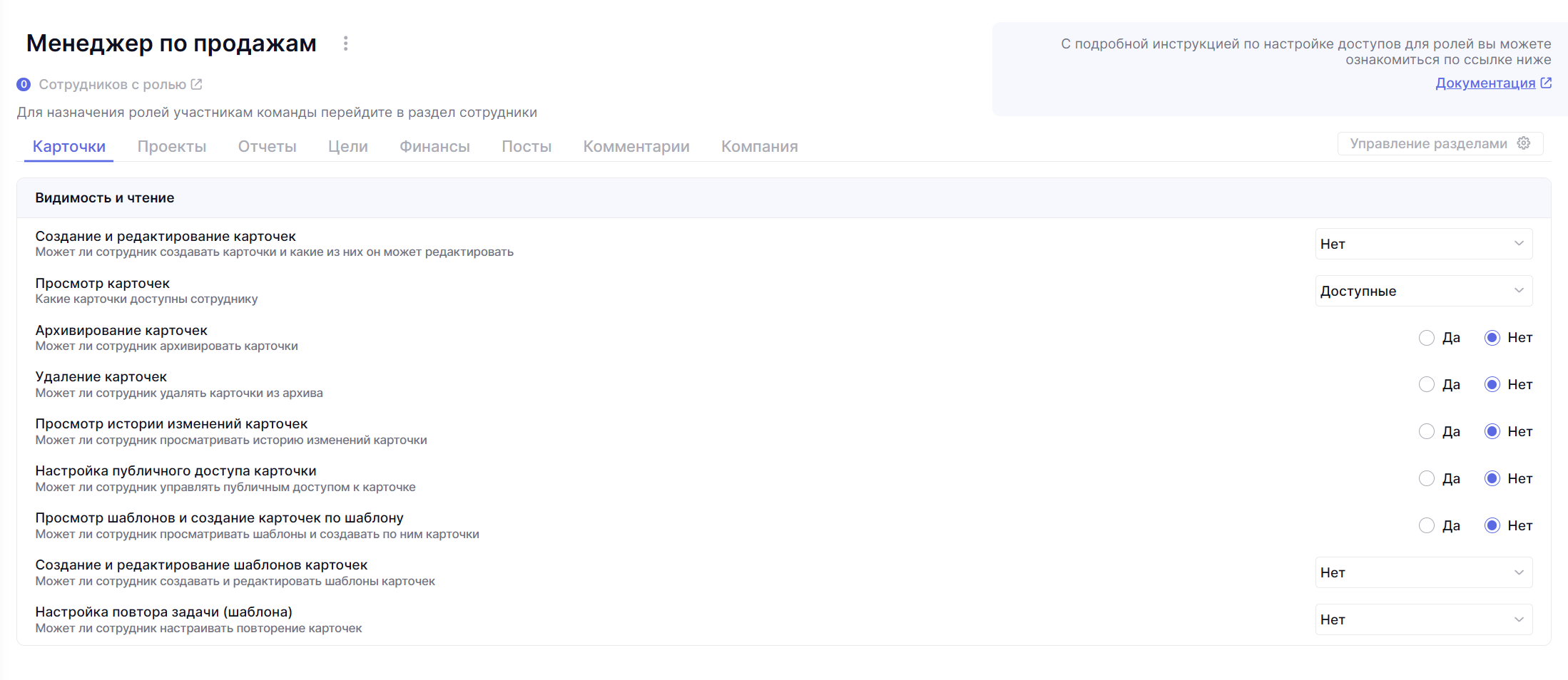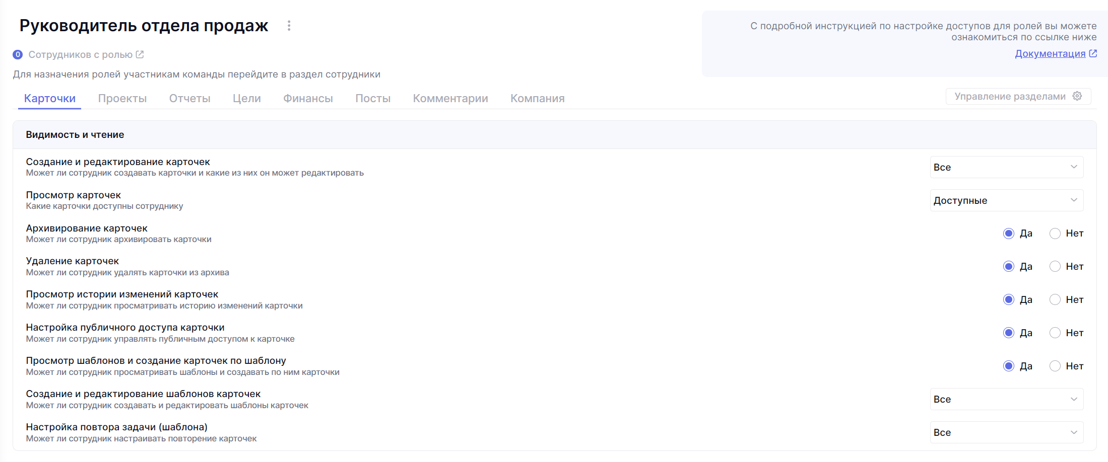 Аналогично можно выдать доступ к управлению шаблонами карточек и повторяемым задачам.