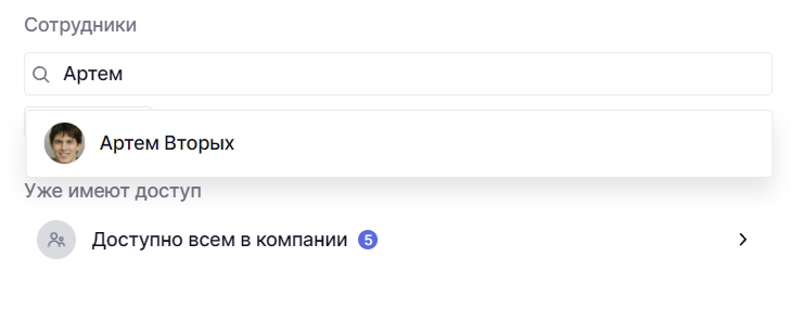 Но это легко изменить. Нажмите на поисковую строку, введите имя или почту сотрудника и выберите его в результах поиска.